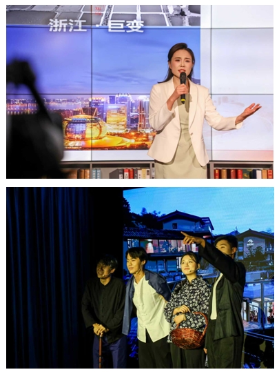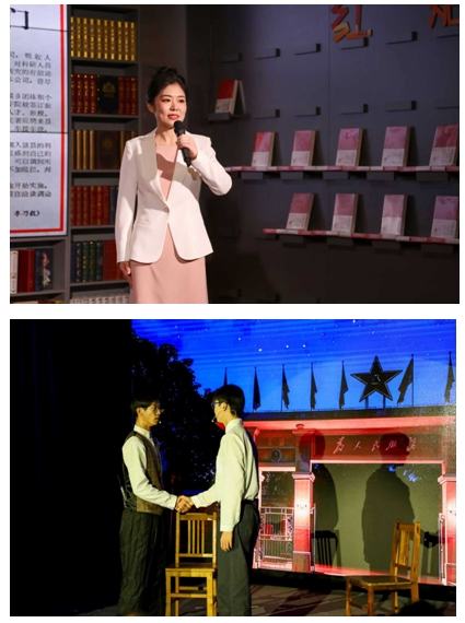 旅游管理系黨支部副書記王娟以《思想浸潤心靈  傳文脈繼往開來——習近平文化思想在浙江的溯源與實踐》為題,分享了《習近平在浙江》的讀書心得,情景劇《遺址邊的吶喊》,將思想性、藝術性及感染力高度結合,讓觀眾在情感共鳴中感受習近平文化思想的偉力。