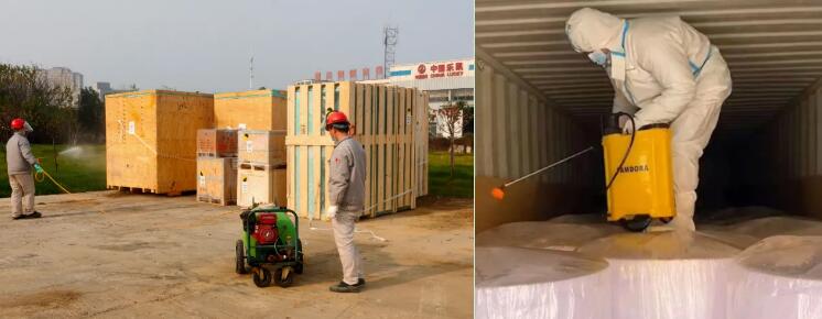 中國樂凱集團(tuán)公共事業(yè)部嚴(yán)格落實(shí)防疫要求,進(jìn)口到貨采取“多重消毒”,即進(jìn)口集裝箱進(jìn)入卸料區(qū)后,由消毒人員對車輛和集裝箱進(jìn)行整體的外部消毒;打開集裝箱箱門后,消毒人員進(jìn)入集裝箱,對箱內(nèi)貨物進(jìn)行二次消毒 ,貨物卸車后消毒人員對貨物進(jìn)行全方位消毒。中高風(fēng)險區(qū)到貨采取卸貨后集中全方位消毒。