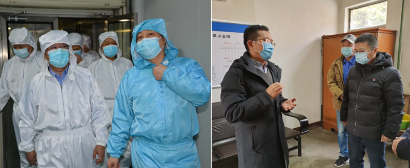 2月12日,農(nóng)歷大年初一,中國樂凱集團(tuán)董事長、黨委書記滕方遷,副總經(jīng)理馮軍,董事會秘書婁永峰一行先后到樂凱醫(yī)療基材事業(yè)部,片基事業(yè)部生產(chǎn)三部,公共事業(yè)部警衛(wèi)隊、單身公寓、監(jiān)控室看望春節(jié)期間堅守一線的工作人員和因為疫情防控就地過年的青年員工。