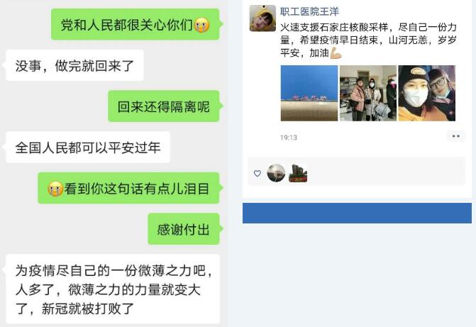 疫情就是命令,防控就是責(zé)任。按照有關(guān)安排部署,樂(lè)凱職工醫(yī)院迅速響應(yīng),立即選派2名業(yè)務(wù)素質(zhì)高、責(zé)任心強(qiáng)的醫(yī)務(wù)人員前往石家莊支援疫情防控工作。