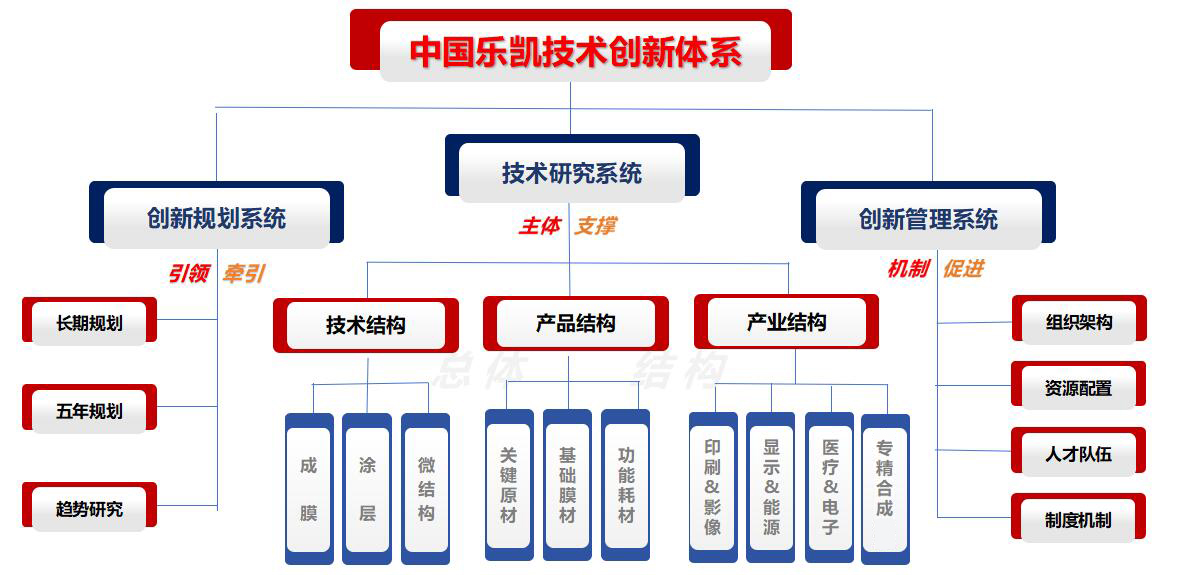 圍繞中國樂凱“成膜、涂層、微結(jié)構(gòu)”核心技術(shù),在成膜基礎(chǔ)上通過涂層和微結(jié)構(gòu)進行功能集成,在現(xiàn)有領(lǐng)域深耕并拓展,實現(xiàn)現(xiàn)有產(chǎn)業(yè)和新方向的銜接;堅持“關(guān)鍵原材、基礎(chǔ)膜材、功能耗材”的產(chǎn)品結(jié)構(gòu)布局,不斷研究新技術(shù)、培育新產(chǎn)品、拓展新領(lǐng)域。重點研究領(lǐng)域為印刷&影像材料、顯示&能源材料、醫(yī)療&電子材料和專精合成材料。